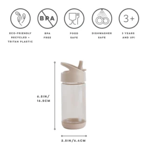 3 Sprouts -vesipullo on suunniteltu erityisesti pikkukäsille – pillillä varustettu juomaletku on helppo avata ja sulkea uudelleen, mikä tekee juomisesta vaivatonta. Pullo on valmistettu myrkyttömästä, ympäristöystävällisestä Tritan-muovista, joka on naarmuuntumaton, hajuton ja tahraton. Yhdistä samaan sarjaan kuuluvaan lounaslaatikkoon yhtenäisen ilmeen luomiseksi.