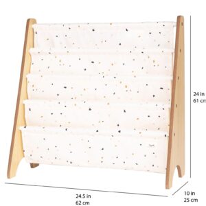 Lapsen korkeudella oleva lattiakirjateline, joka sopii täydellisesti piirustuksille, värityskirjoille ja lastenkirjoille. Sopii käytettäväksi sekä lastenhuoneessa että osana olohuoneen sisustusta. Kannustaa hauskanpitoon ja oppimiseen samanaikaisesti.