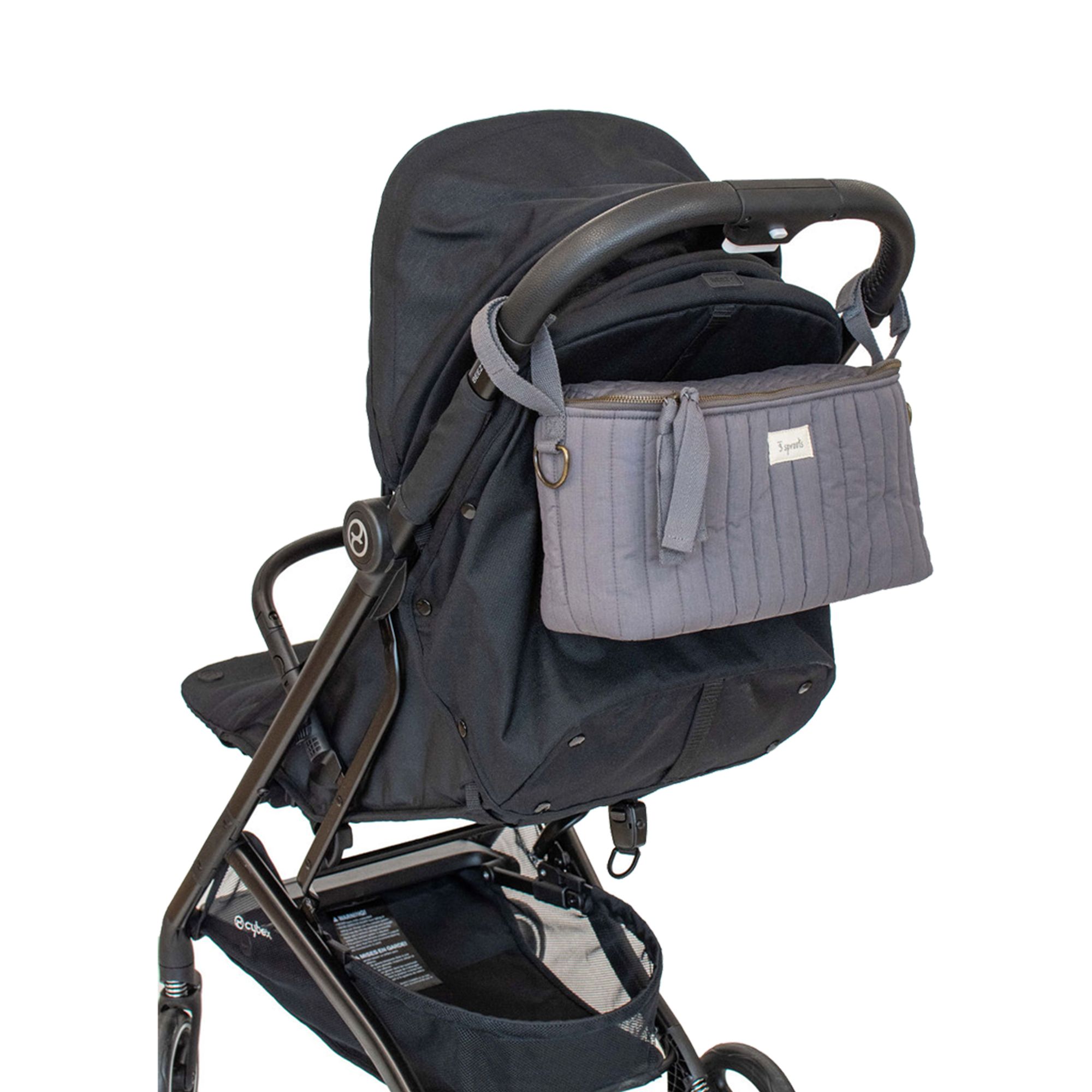 Älykäs ja tyylikäs tikattu lastenrattaiden järjestäjä, joka muuttuu helposti kompaktiksi hoitolaukuksi irrotettavan olkahihnan avulla. Soveltuu erinomaisesti vanhemmille, jotka kaipaavat kätevää säilytysratkaisua liikkeellä ollessaan.