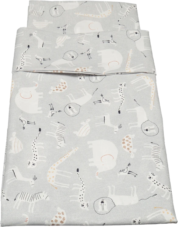 Iloisesti kuvioitu lasten pussilakana 120x160cm ja tyynyliina 40x60cm. Laadukasta Öko-Tex100 sertifioitua 100% puuvillaa. Pussilakana on ommeltu alaosasta osittain kiinni, että peitto pysyy hyvin paikoillaan. Ei käsiaukkoja. Tyynyliina on ommeltu perinteiseen taskumalliin.
