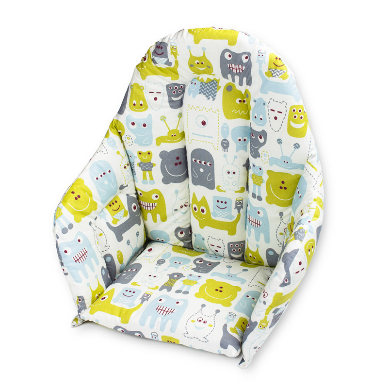 Syöttötuolin pehmuste mukaviin ruokailuhetkiin. Tällä pehmusteella voit supistaa syöttötuolin pienemmälle lapselle. Päällinen on vettä ja likaa hylkivää akryylipinnoitettua puuvillakangasta, sisus kotimaista kierrätettyä polyesterivanua.