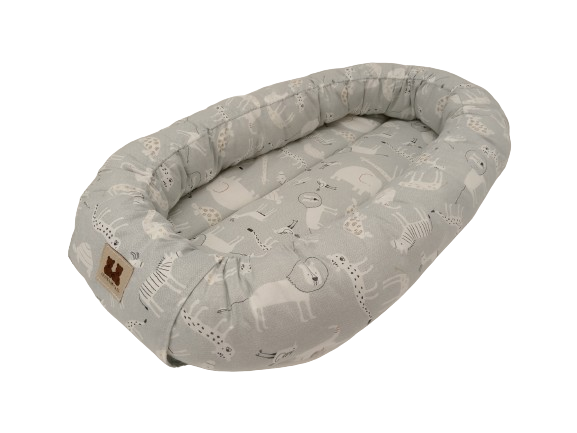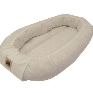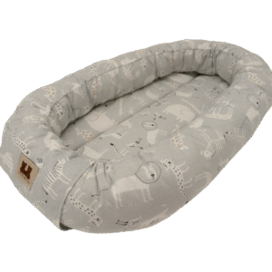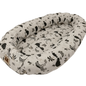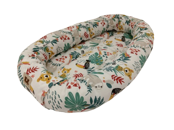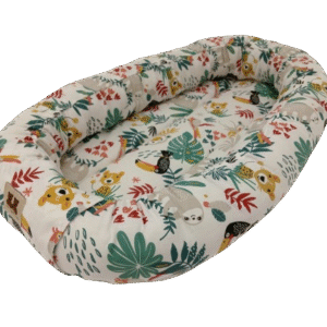 Vauvapesä antaa turvallisuuden tuntua pienentämällä pienen vauvan makuutilaa. Pesän kokoa voidaan säätää nyöreillä. Huom: kangasläppä pitää nyörit pois vauvan ulottuvilta. Vauvapesän päälliskangas on puhdasta Öko-Tex100 -sertifioitua puuvillaa ja sisusmateriaali hengittävää polyesterivanua.