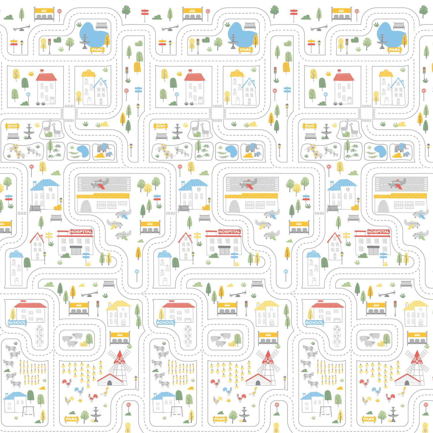 Pehmeä ja käännettävä leikkimatto, jossa on iloiset eläin- ja luontokuvitukset toisella puolella sekä kaupunkiteema toisella. Tiivis XPE-vaahto pehmentää leikkiä ja suojaa lattiaa, ja mukaan tuleva kuljetuslaukku helpottaa säilytystä ja mukaan ottamista.
