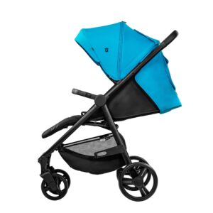 Selkänoja on säädettävissä kolmeen asentoon ja taittuu täysin makuuasentoon yhdellä kädellä. Säädettävä jalkatuki, ilmastoidut sivut ja jousitus takapyörissä tekevät matkustamisesta miellyttävää lapselle.