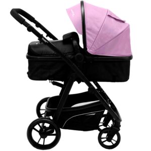 Kevyt mutta kestävä rakenne, käännettävä istuin ja säädettävä ohjaustanko tarjoavat käytännöllisyyttä arkeen. Kompakti kokoontaitto tekee säilytyksestä helppoa myös pienissä tiloissa. Leveä kuomu, moniasentoinen selkänoja ja täysi jousitus tuovat mukavuutta sekä lapselle että vanhemmalle.