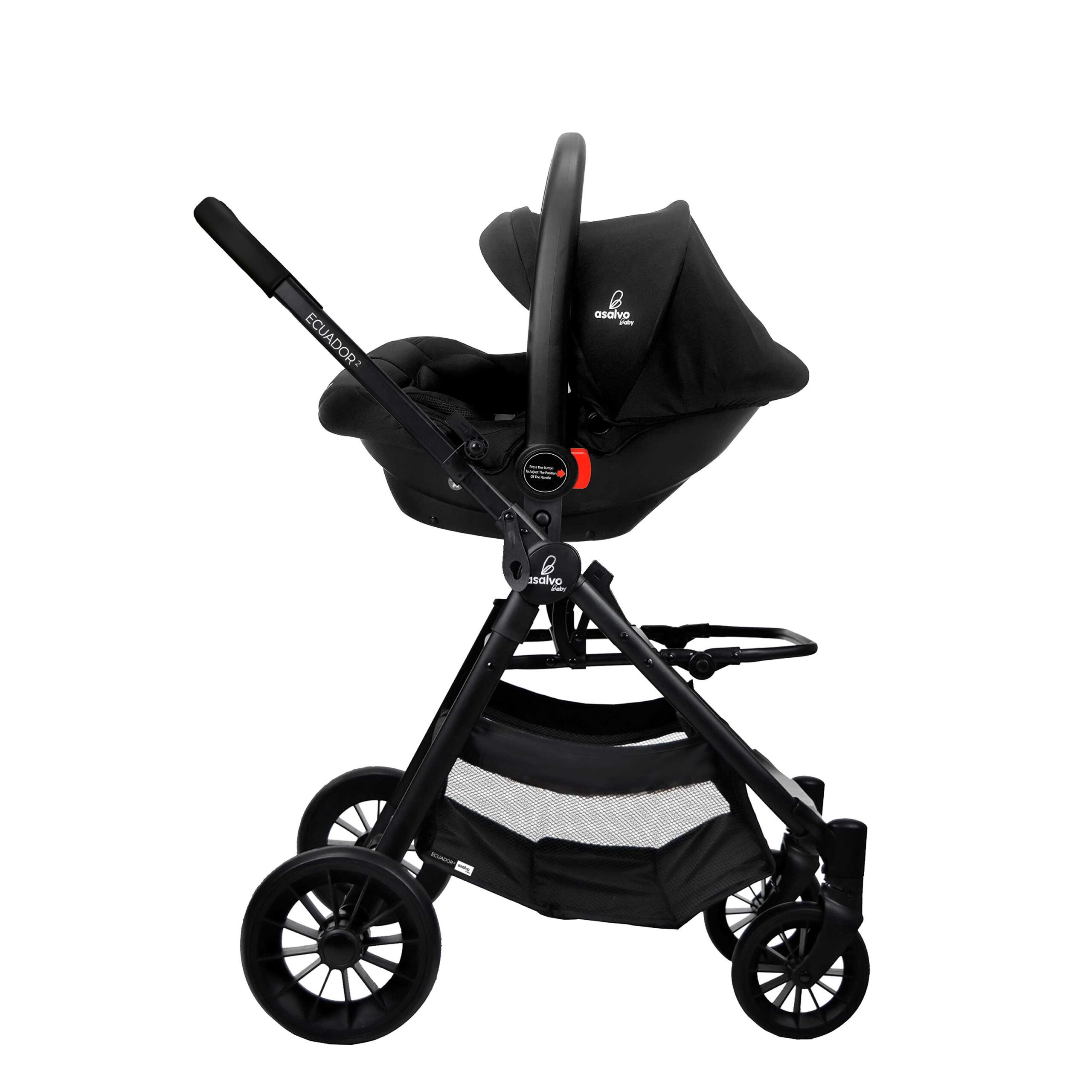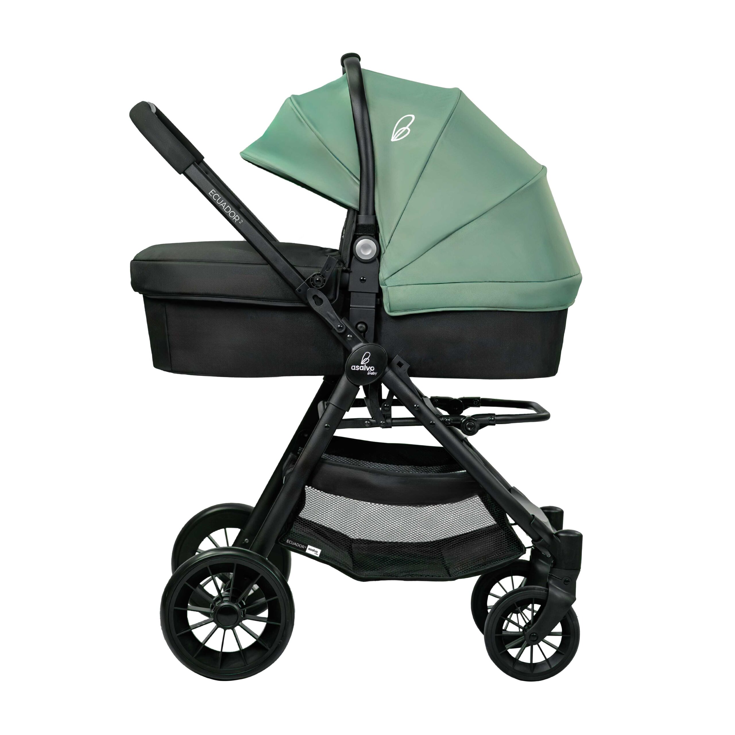 Asalvo Trio Ecuador 2 on täydellinen ratkaisu lapsen ensimmäisille vuosille. Pakettiin sisältyy lastenrattaat (0–22 kg), kantokoppa pehmeällä 3 cm:n patjalla sekä ryhmän 0+ turvaistuin (40–85 cm) kantokahvalla. Teräsrunko tekee kokonaisuudesta kestävän mutta silti käytännöllisen.