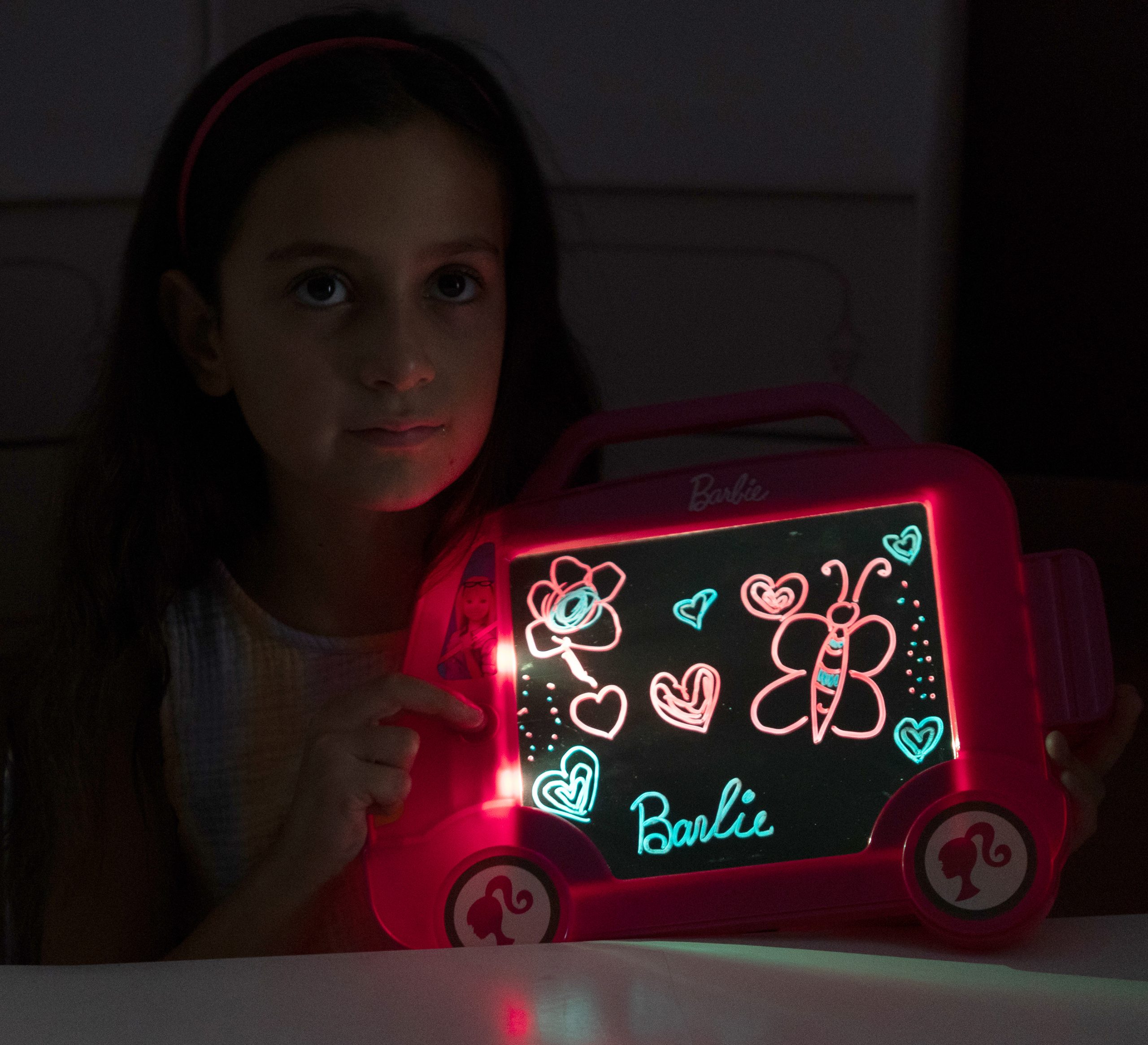 Tämä innovatiivinen Barbie piirustuslauta yhdistää piirustuslaudan ja yövalon, ja tekee lastenhuoneesta entistä hauskemman ja luovemman paikan. Lapset voivat piirtää kauniita kuvioita, jotka heräävät eloon pimeässä – 8 erilaista valoasetusta vaihtuvilla väreillä tuovat piirroksiin upean hohteen.