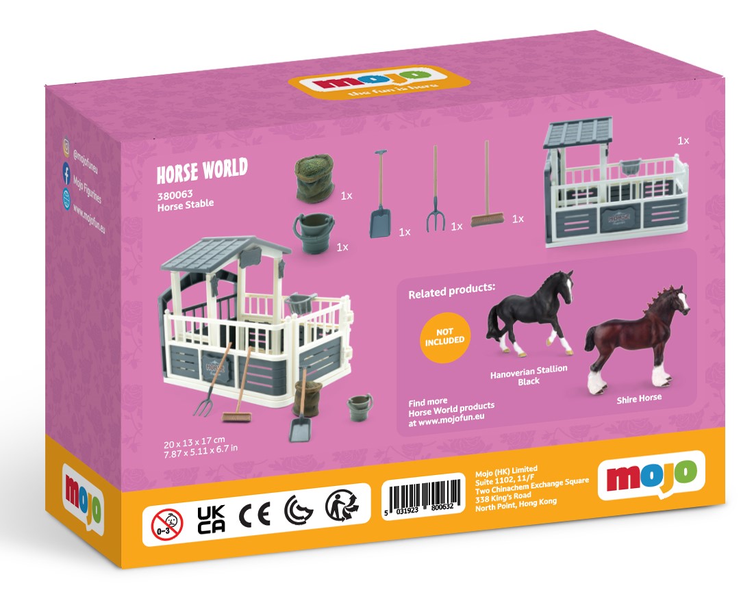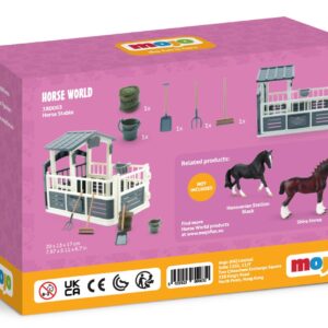 MOJO-hevostalli tuo lasten leikkeihin aidontuntuisen maatilaympäristön. Settiin sisältyy useita tarvikkeita, jotka tekevät leikistä monipuolista ja elämyksellistä.