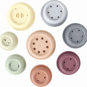 Ihastuttava setti (8 eriväristä kuppia), joissa on erilaisia reikiä eri määrä, tekee vesileikeistä ja oppimishetkistä hauskoja ja opettavaisia. Kupit voi pinota torniksi, käyttää yksitellen tai yhdistää kylpyammeessa ja hiekkalaatikolla.
