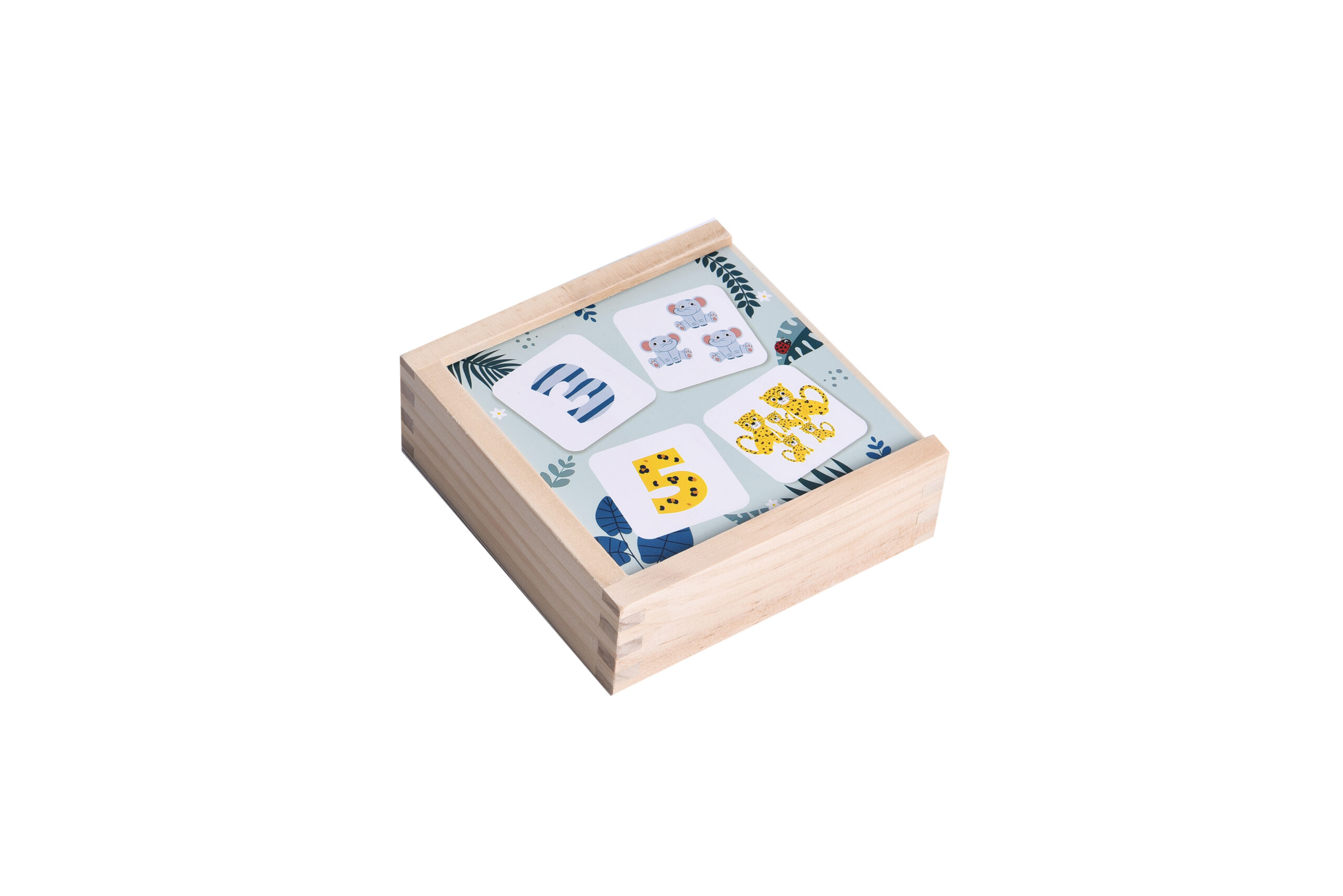 Setissä on 10 villieläinlaattaa ja 10 numerolaattaa (1–10), joiden avulla lapsi pääsee harjoittelemaan numeroiden tunnistamista ja yhdistämistä eläinten kanssa.