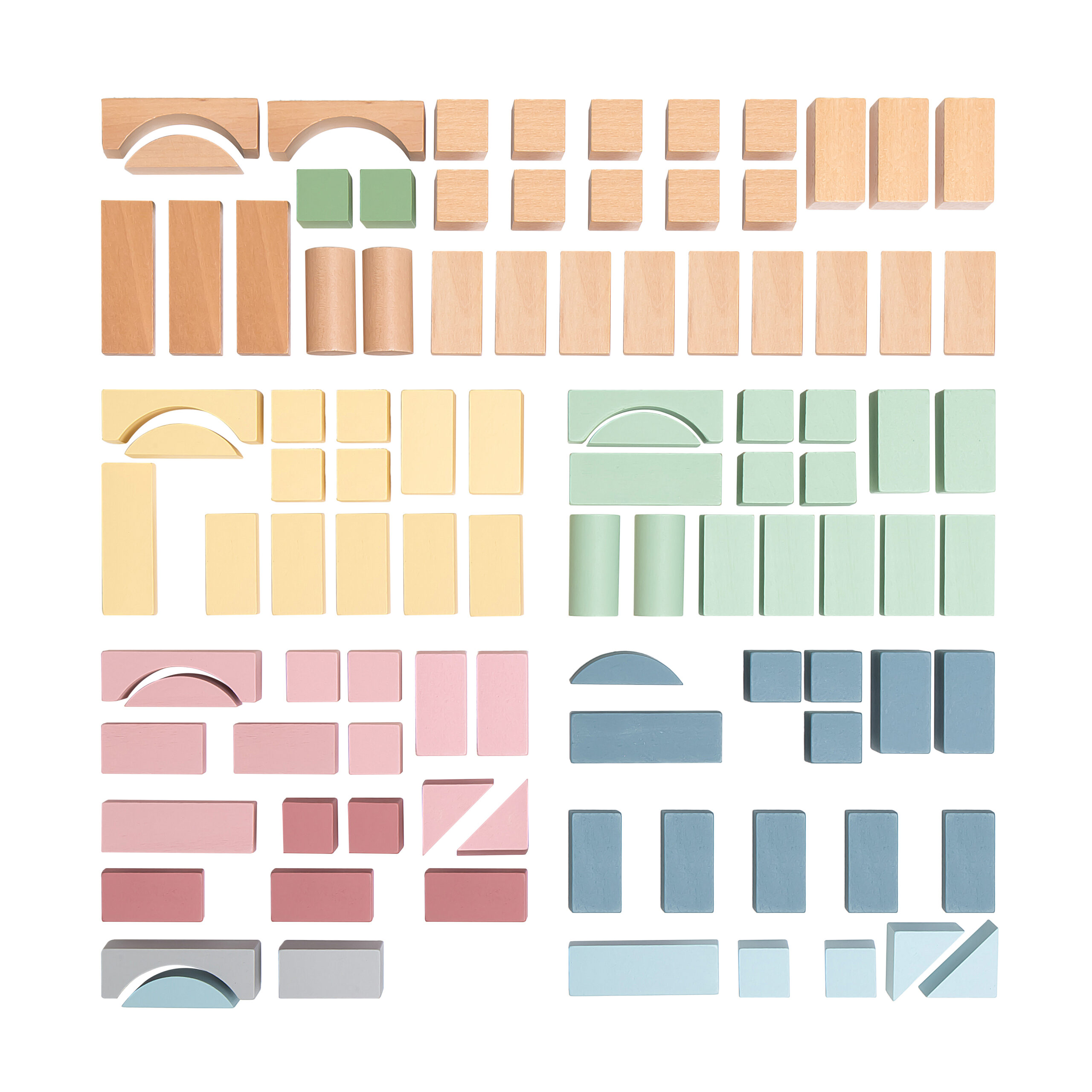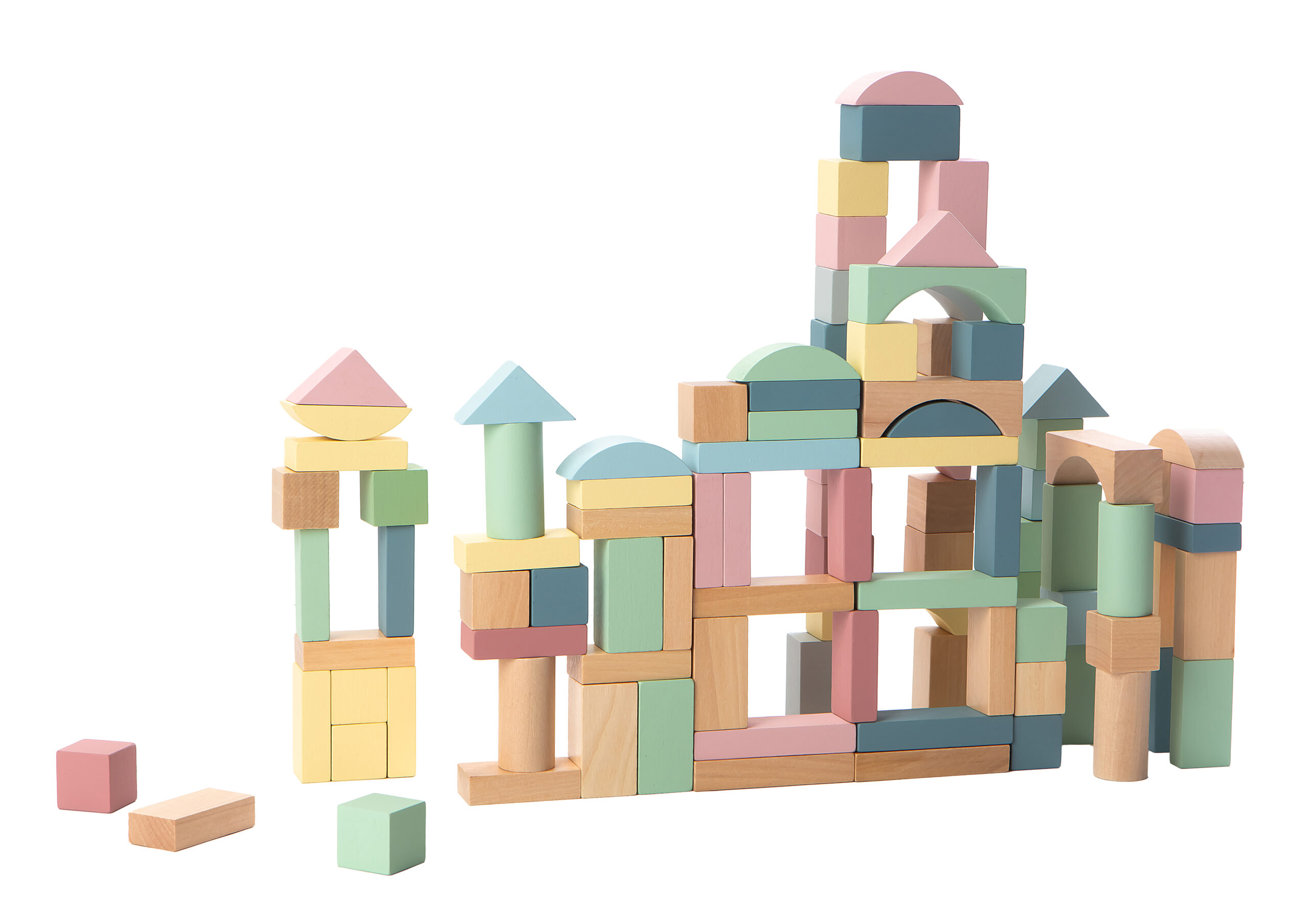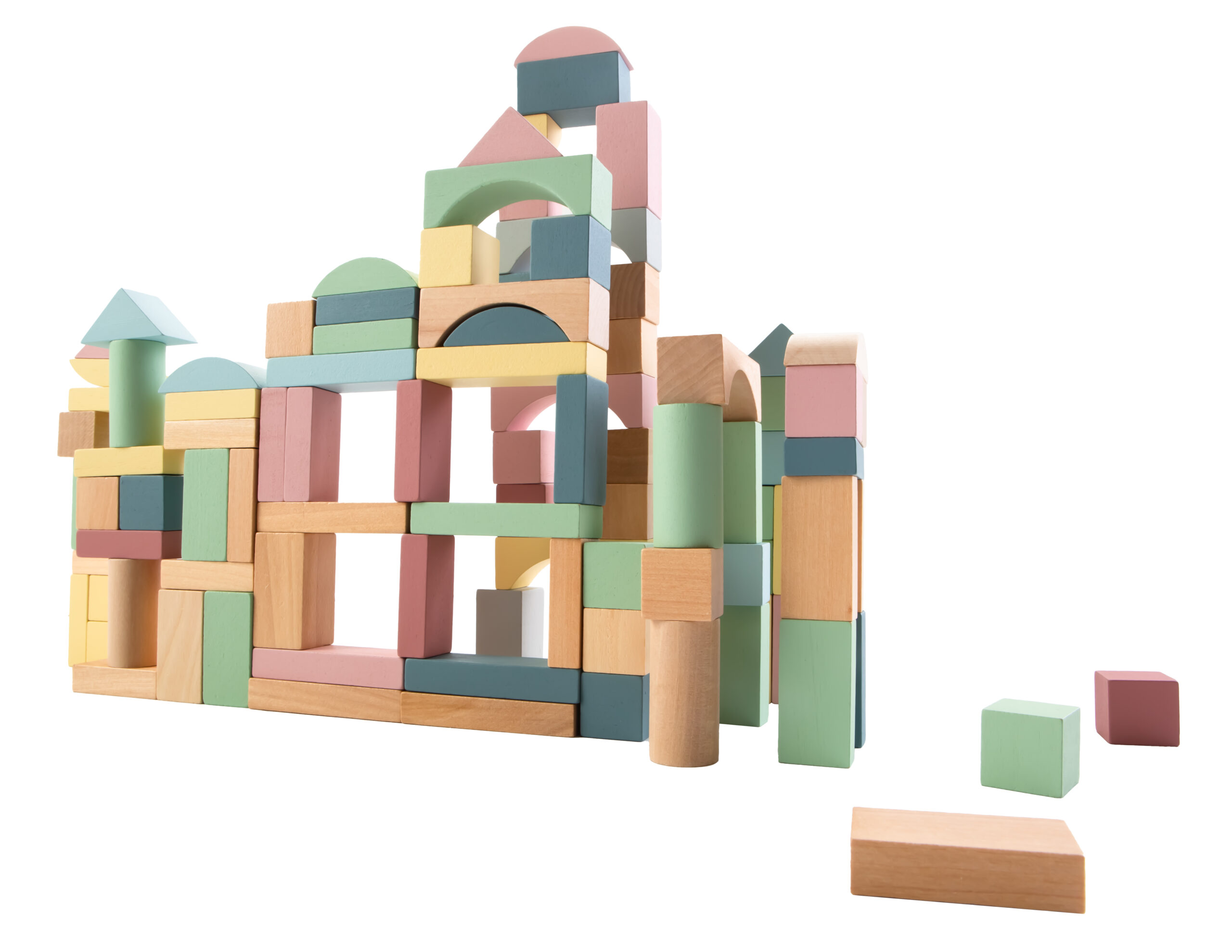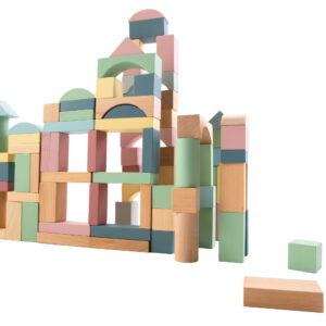 Monipuolinen setti (100kpl) erivärisiä ja -muotoisia puupalikoita talojen, autotallejen, linnojen ja kaikenlaisten mielikuvitusrakennelmien rakenteluun. Kehittää luonnostaan lapsen hienomotoriikkaa, luovuutta ja tilan hahmottamista – leikin kautta.