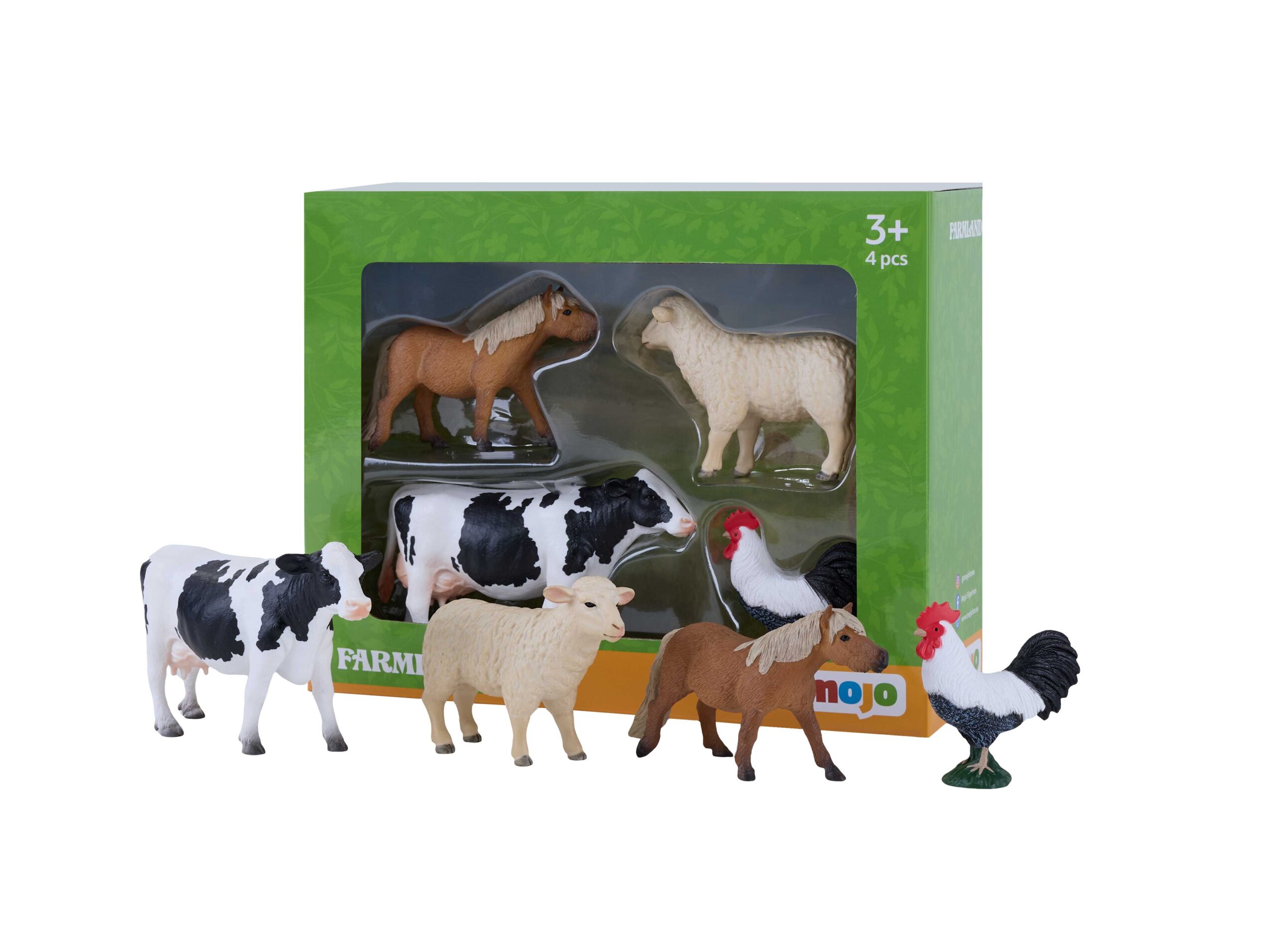 Tämä lahjasetti tuo maatilan tunnelman lasten leikkeihin! Pakkauksesta löytyy poni, lehmä, kukko ja lammas, joilla voi leikkiä yksinään tai yhdistää muihin Mojo-figuureihin. Realistisesti muotoillut eläimet kehittävät lapsen mielikuvitusta ja tarjoavat hauskoja roolileikkejä, joissa harjoitellaan sosiaalisia taitoja sekä eläinten tunnistamista.
