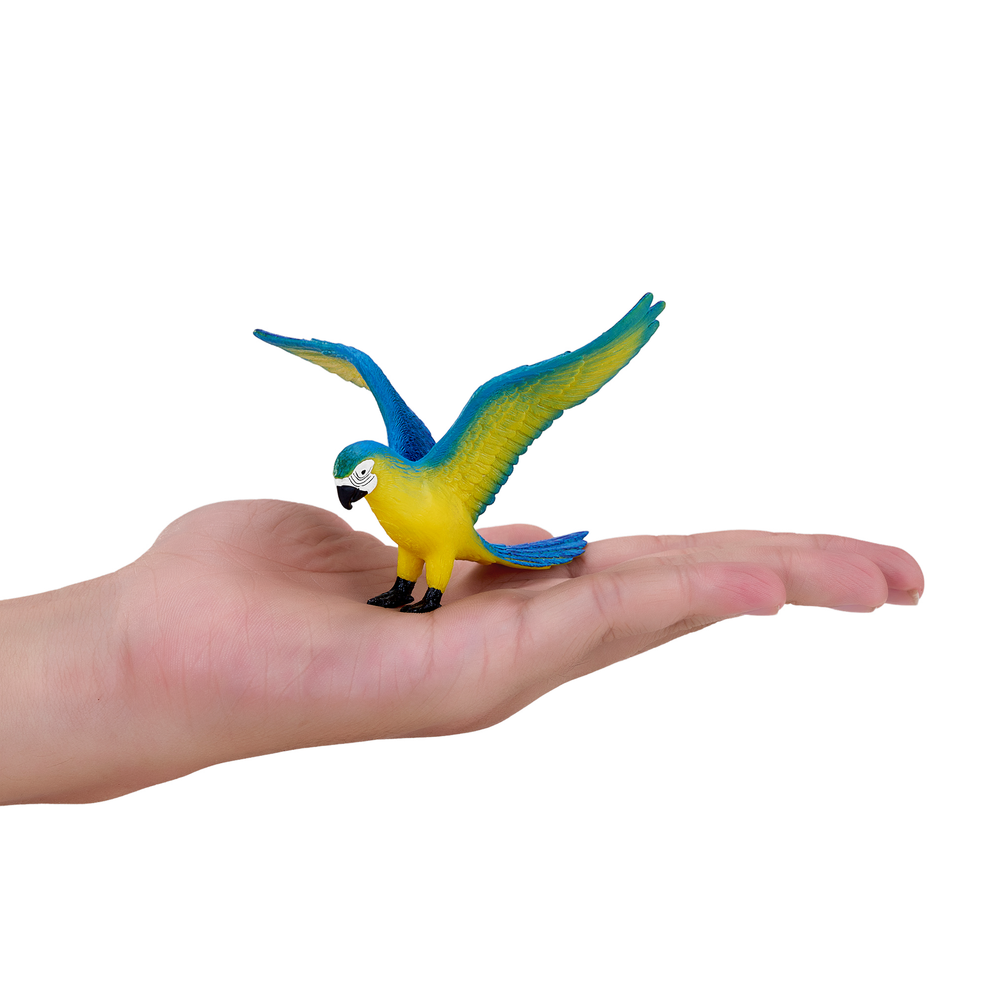 Sinikeltainen papukaija on realistinen ja käsinmaalattu figuuri, joka tuo värikkään lintumaailman lasten leikkeihin. Sen yksityiskohtainen ulkonäkö tekee siitä sopivan sekä roolileikkeihin että opetukseen ja keräilyyn.