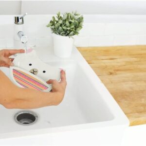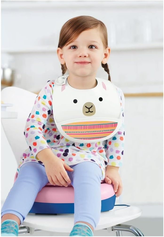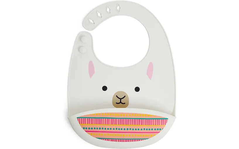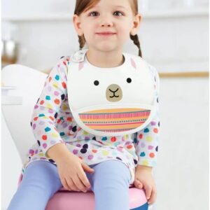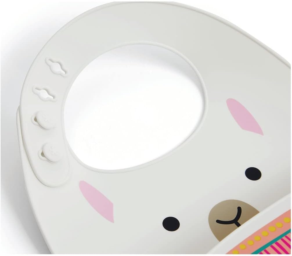 Tämä Skip Hop -ruokalappu on valmistettu turvallisesta silikonista, ja se on korvaamaton apu perheen pienimpien ruokahetkissä. Silikonimateriaalin voi pyyhkiä tai huuhtoa puhtaaksi, eikä sitä tarvitse pestä erikseen pesukoneessa. Säädettävä niskalenkki tuo käyttömukavuutta.
