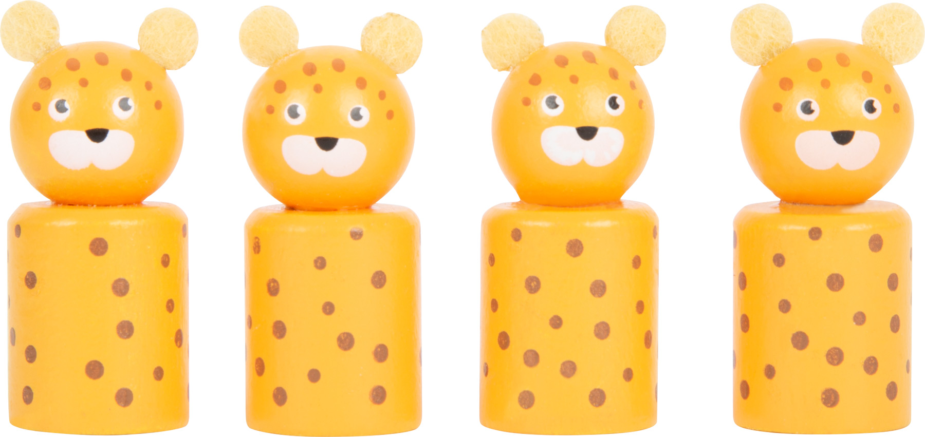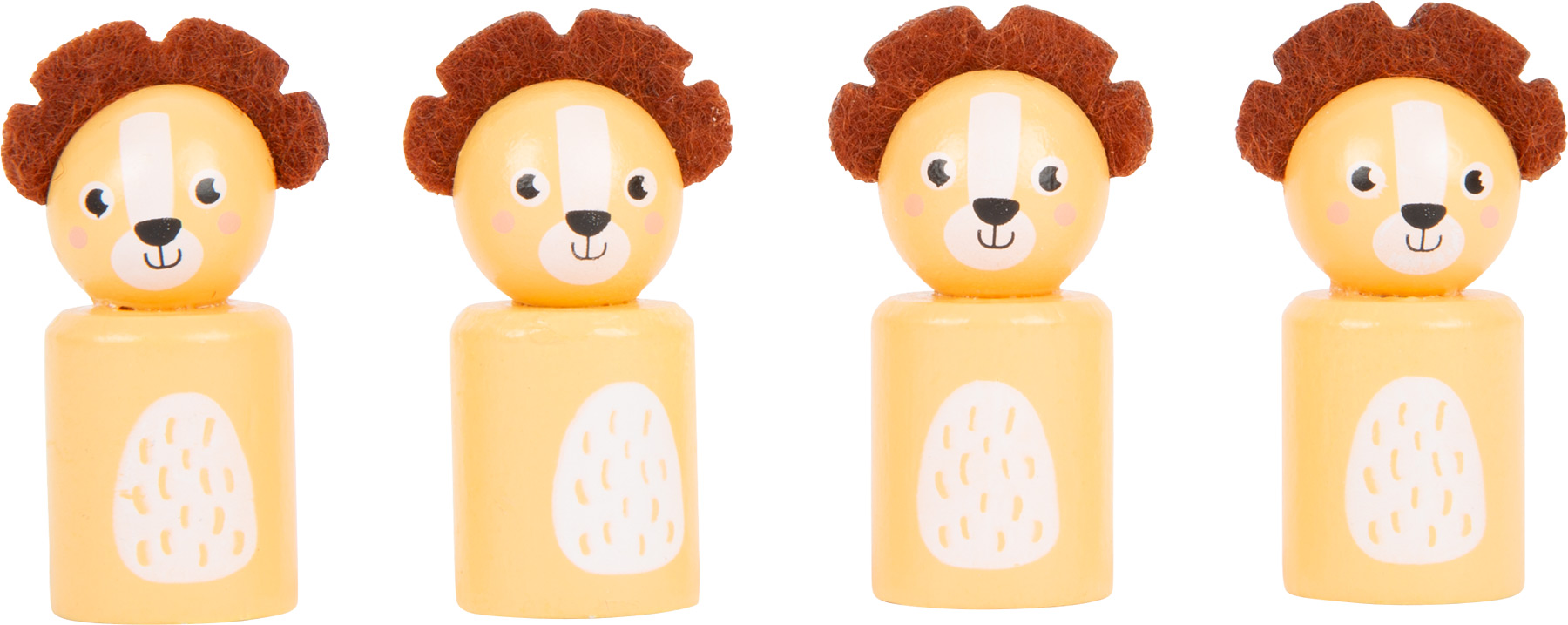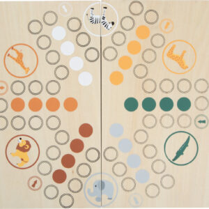 Tämä värikäs ja yksityiskohtaisesti suunniteltu puinen Ludo tarjoaa iloa koko perheelle! Pelaajat johdattavat savannin eläinhahmonsa – seepran, kirahvin, krokotiilin, elefantin, leopardin ja leijonan – maaliin. Pehmoiset huopaosat, kuten korvat ja harjat, tekevät hahmoista erityisen suloisia ja helposti tunnistettavia. Pelilauta on kätevästi taitettava ja toimii samalla säilytyslaatikona, joten peli kulkee helposti mukana matkoilla. Kahdella nopalla edetään kentillä, ja peli opettaa lapsille laskemista ja vuorottelua hauskalla tavalla. Täydellinen pelihetki koko perheelle – sekä kotiin että reissuun!