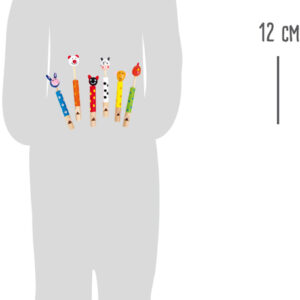 Tutustu musiikin maailmaan leikkisĂ€sti lehmĂ€n, kukon, aasin ja muiden elĂ€inystĂ€vien kanssa! NĂ€mĂ€ vĂ€rikkÀÀt, yksityiskohtaisesti maalatut puupillit innostavat kuuntelemaan, kokeilemaan ja luomaan omia sĂ€veliĂ€. Liukuvalla puutikulla ÀÀnenkorkeutta on helppo muuttaa â tĂ€ydellinen ensikosketus soittamiseen ja ÀÀnen tutkimiseen.