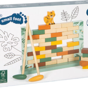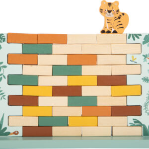 Tämän FSC® 100% -puusta valmistetun pelin ideana on naputella tiili kerrallaan pois tukevasta seinästä niin, ettei muuri ala horjua – jos muuri romahtaa ja suloinen tiikeri putoaa alas, kierros päättyy. Peli kehittää hienomotoriikkaa, keskittymistä ja kärsivällisyyttä hauskalla tavalla, ja toimii sekä yksin pelattuna että koko perheen yhteisenä iltapuuhana. Lapsiystävällinen safari-ilme ja korkea puupinnan osuus tekevät pelistä myös kauniin lisän lastenhuoneeseen.