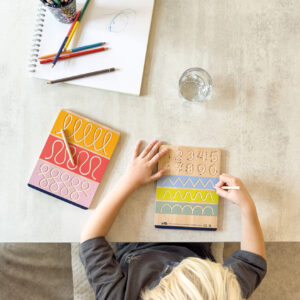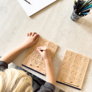 Kirjoituslaudoissa on integroitu sÀilytystila kirjoitusvÀlineille, jotta ne pysyvÀt aina tallessa ja helposti saatavilla. TÀmÀ Montessori-henkinen oppimisvÀline sopii erinomaisesti kotiin, pÀivÀkotiin ja kouluun. Harjoittelu tukee paitsi kirjoittamisen perustaitoja myös keskittymiskykyÀ, kÀden ja silmÀn yhteistyötÀ sekÀ luovuutta hauskalla ja motivoivalla tavalla.
