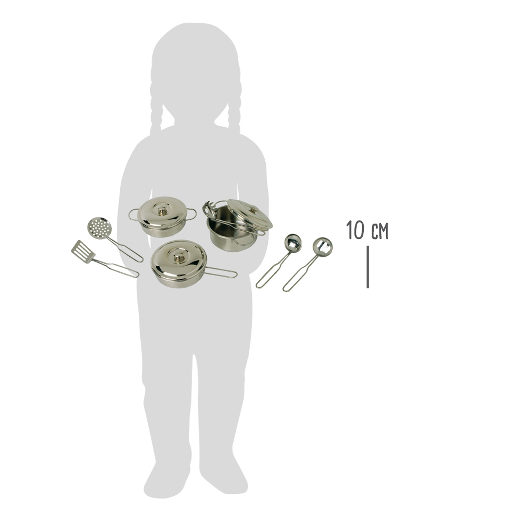 Kokkaa kuin mestari omassa leikkikeittiössä! Pienille käsille suunniteltu astiasetti sisältää kaksi kattilaa kansineen, paistinpannun kannella sekä viisi välttämätöntä keittiövälinettä – herkkuja syntyy arkeen ja juhlaan. Täydellinen lisä lasten keittiöön ja roolileikkeihin.