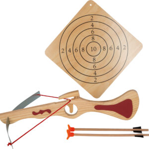 Turvallinen jousiammuntaleikki onnistuu tĂ€mĂ€n puisen jalkajousen kanssa: se ampuu ainoastaan imukuppinuolia, jotka tarttuvat tasaisiin pintoihin. Mukana on taulu ja kaksi nuolta â harjoitus tekee mestarin! KestĂ€vĂ€ rakenne ja lapsiystĂ€vĂ€lliset materiaalit sopivat sekĂ€ sisĂ€- ettĂ€ valvottuihin ulkoleikkeihin.