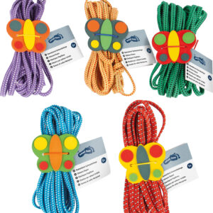 Monipuolinen kuminauhasetti innostaa liikkumaan pihalla ja sisällä. Elastinen, monivärinen nauha sopii perinteisiin kuminauhaleikkeihin yksin tai kavereiden kanssa: hypitään, venytetään ja keksitään omia kuvioita – samalla kehittyvät ketteryys, rytmi ja tasapaino. Koristeellinen pidike pitää nauhan siististi tallessa leikin jälkeen.