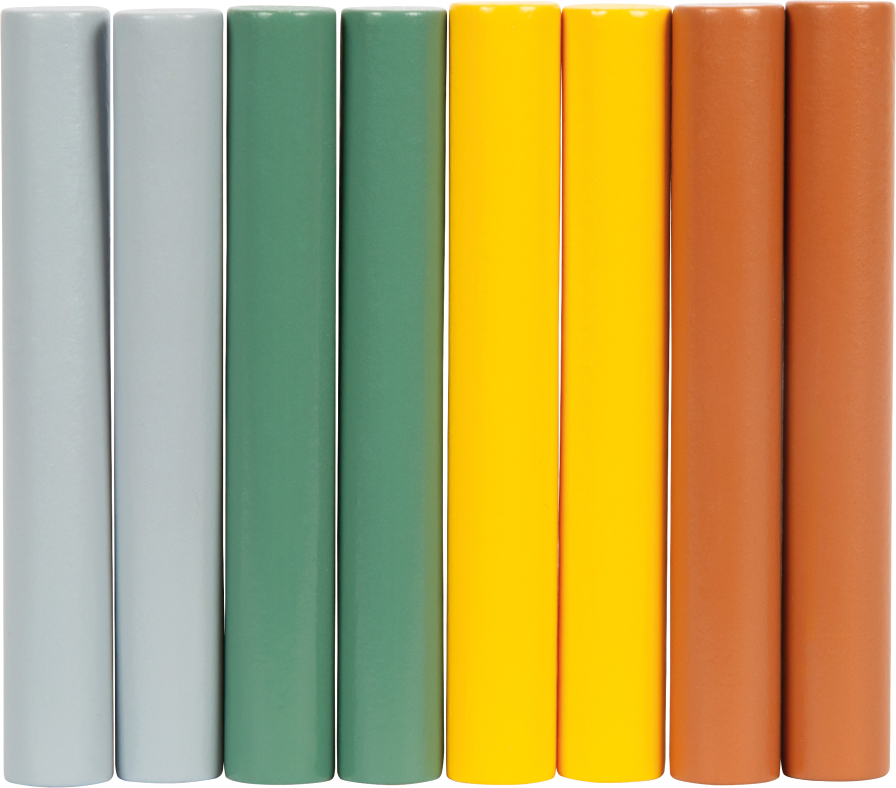 Monipuoliset materiaalit: 4 kolikkoa, 8 tikkua ja 4 palikkaa