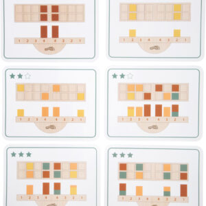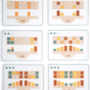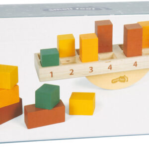 Tässä FSC® 100% -sertifioidusta puusta valmistetussa tasapainopelissä lapset pinovat erikorkuisia palikoita tukevan keinulaudan koloihin ja etsivät pisteen, jossa kokonaisuus pysyy tasapainossa. Numeromerkinnät laudassa auttavat hahmottamaan painon, paikan ja vipuvarren suhdetta. Mukana tulee 16 värikästä puupalikkaa ja esimerkkikortteja eri taitotasoille – vapaa rakentelu tai mallin mukaan, aina sopivalla haasteella. Leikki kehittää hienomotoriikkaa, keskittymistä, loogista ajattelua ja syy–seurausymmärrystä.