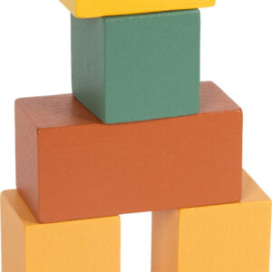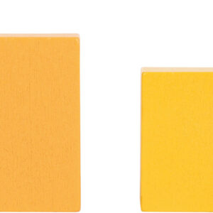 16 värikästä puupalikkaa eri korkeuksilla ja painoilla