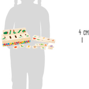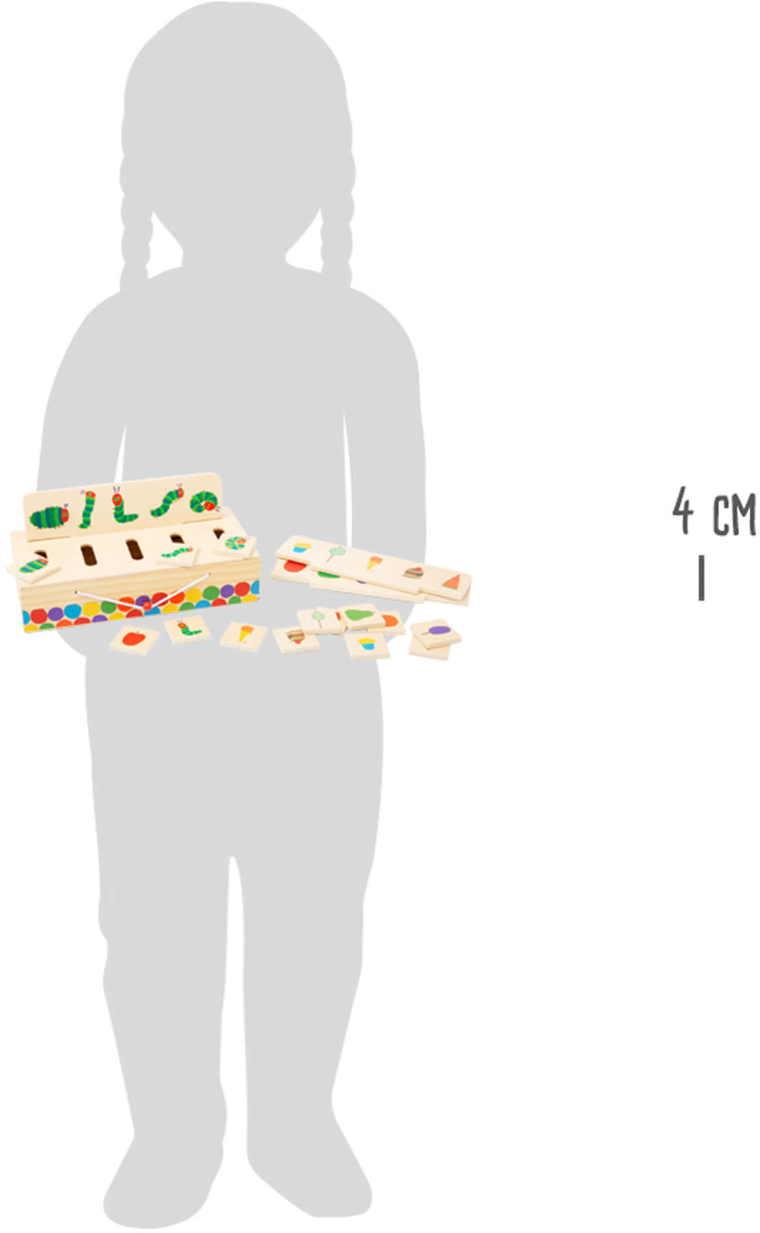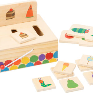 Lajittele ja opi yhdessä Nälkäisen toukan kanssa! Tämä 19-osainen puinen lajittelupeli kehittää lasten muotojen ja värien tunnistamista kirkkaiden, iloisesti kuvioitujen laattojen avulla. Lapset voivat pujottaa kuvalaatat kannen aukosta ja yhdistää ne oikeisiin kuvioihin, mikä tarjoaa oivaltavaa ja hauskaa tekemistä. Kätevä puurasia sulkeutuu tiukasti joustinlenkillä ja puunupilla, joten mikään ei putoa matkalla – täydellinen leikkiin kotona ja reissussa!