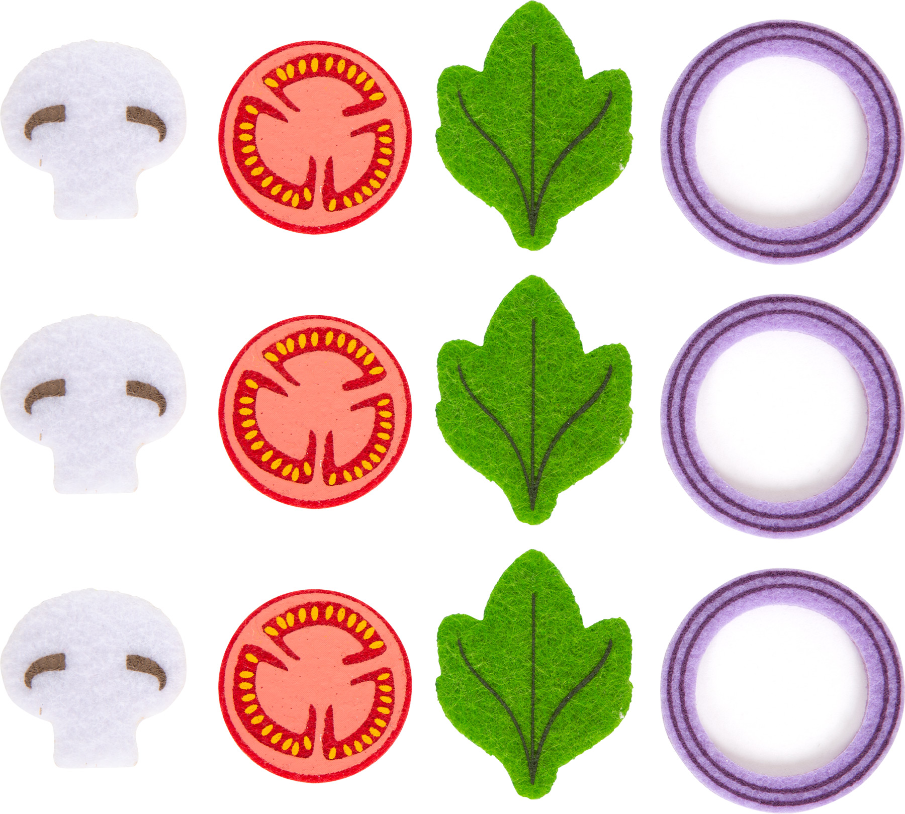 Buon appetito! Tämä pastakokkisetti tuo aidon italialaisen tunnelman lasten leikkikeittiöön. Setti sisältää kolmea eri pastatyyppiä – farfalle, penne ja tortellini – sekä sienet, tomaatit, salaatin ja sipulit, kaikki pehmeästä huovasta valmistettuina. Nämä realistisen kokoiset “ainesosat” tekevät ruoanlaitosta elävän ja innostavan kokemuksen!