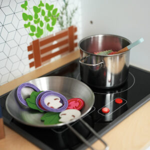Huovutetut pastat ja vihannekset voi sekoittaa keskenään, mikä rohkaisee luovaan roolileikkiin ja omien reseptien keksimiseen. Tämä setti sopii täydellisesti leikkikeittiöön tai leikkikauppaan ja kehittää lasten mielikuvitusta, sosiaalisia taitoja ja hienomotoriikkaa.
