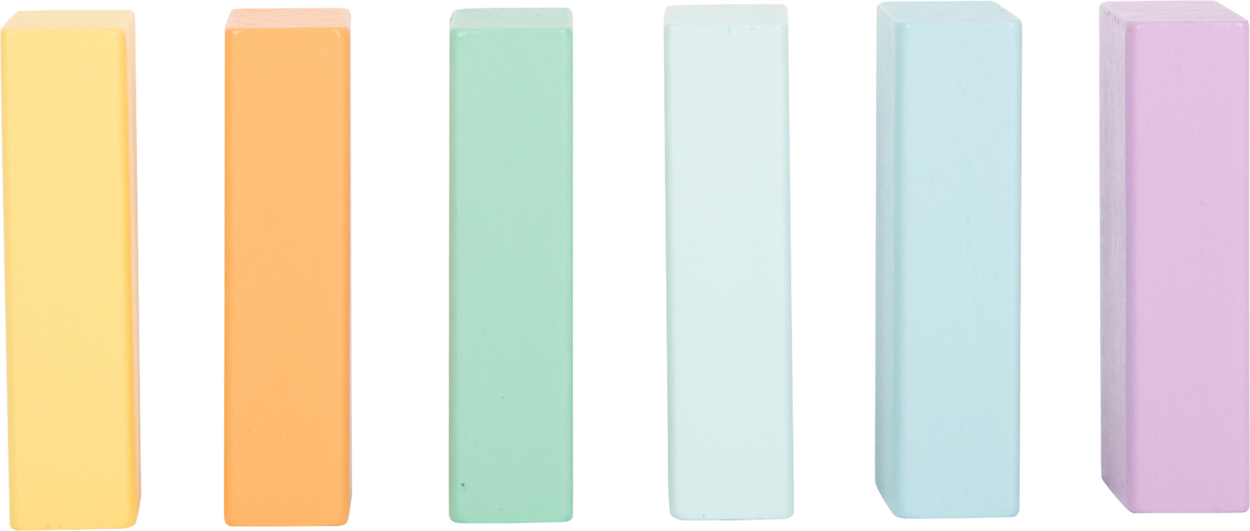 Klassikko uudessa, modernissa ilmeessä! Tämä 50-osainen puinen rakennuspalikkasetti ihastuttaa pieniä rakentajia pehmeillä pastellisävyillä ja lempeillä muodoilla. Monipuoliset palikat eri muodoissa ja korkeuksissa rohkaisevat rakentamaan torneja, taloja ja kokonaisia leikkimaailmoja – vain mielikuvitus on rajana!