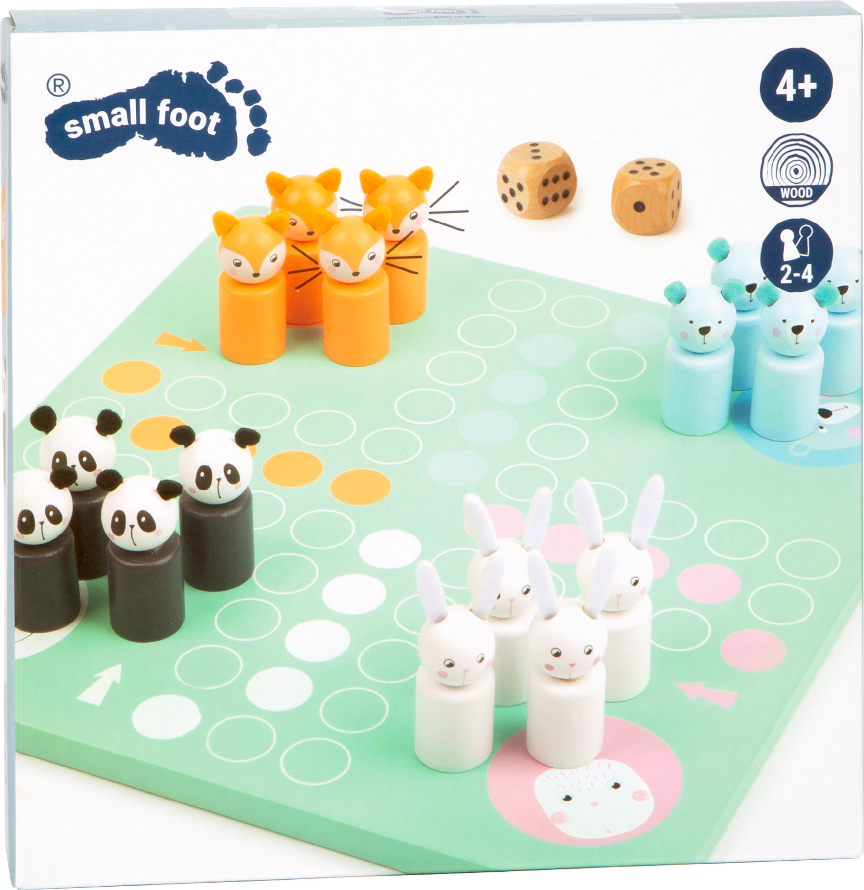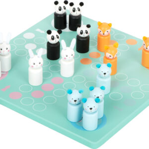 Kuka eläin ehtii kotiinsa ensimmäisenä? Tässä kompaktissa pastellinsävyisessä Ludo-pelissä puiset eläinhahmot – jänis, panda, karhu ja kettu – kilpailevat keskenään päästäkseen maaliin. Nopan silmäluku kertoo, montako askelta kukin hahmo saa liikkua, ja pehmeät huopakorvat tuovat pelinappuloihin ihastuttavat yksityiskohdat. Kätevän kokonsa ansiosta peli kulkee helposti mukana matkoilla, ja sen harmoniset värit tekevät siitä tyylikkään lisän lasten pelihyllyyn.