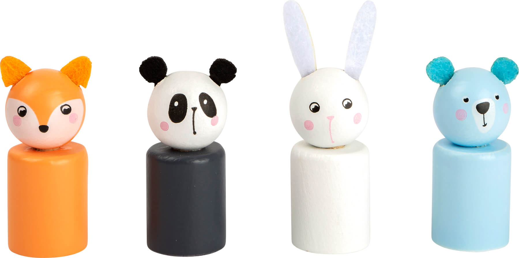 Eläinhahmot: jänis, panda, karhu ja kettu