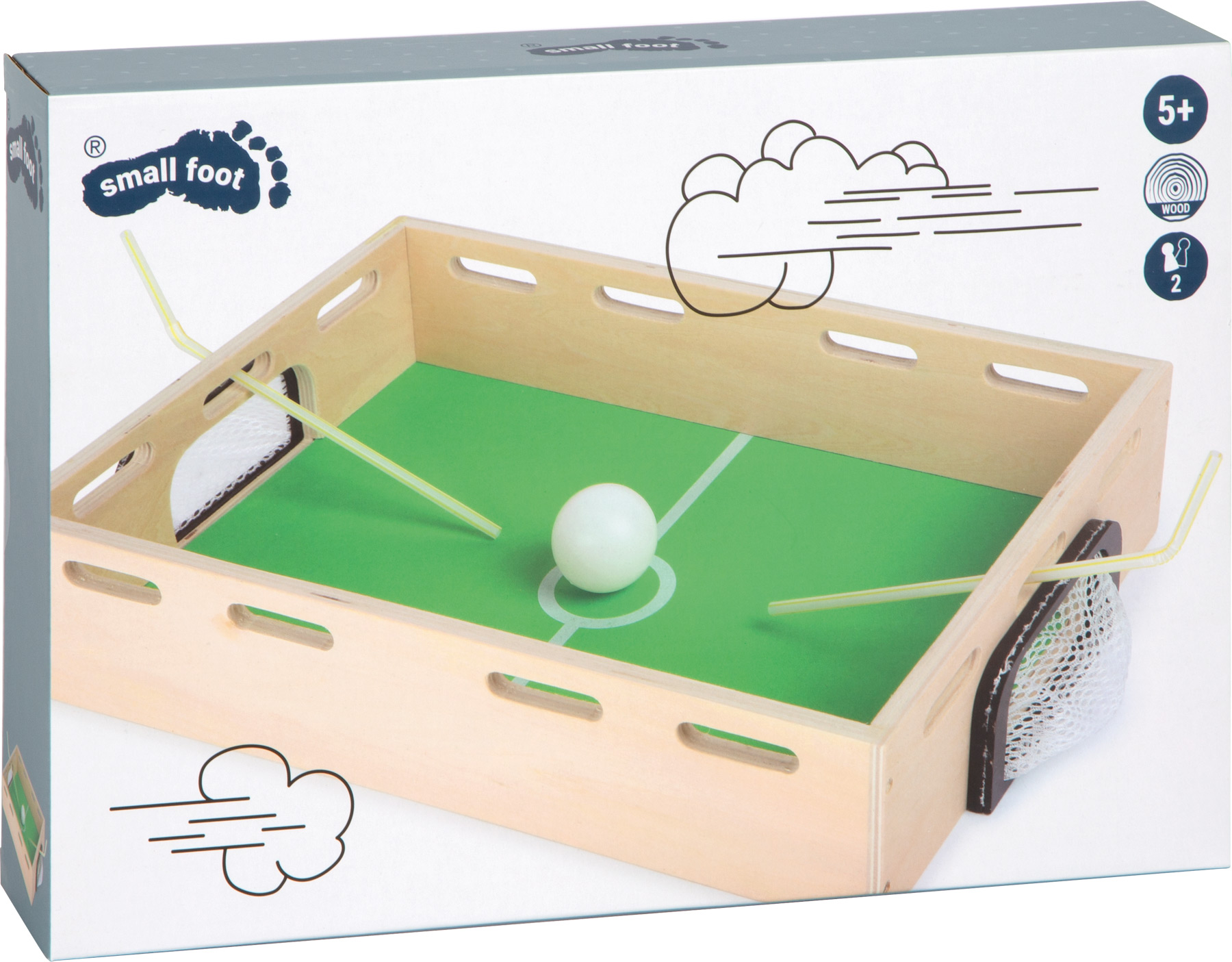 Kuka saa pallon vastustajan maaliin ja pystyy “puhaltamaan” hyökkäyksen alas? Tässä hauskassa taitopelissä liikutat palloa juomapilleillä puhaltamalla – rauhallinen, hallittu puhallus palkitaan. Tukeva kotelolauta kulkee mukana autossa, kotona ja ulkona, joten pieni turnaus onnistuu missä vain.