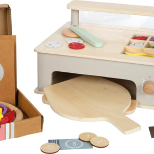 TƤmƤn laajan roolileikkisetin avulla lastenhuone muuttuu hetkessƤ pizzeriaksi. Tukeva puinen uuni toimii uunina, sƤilytystilana ja myyntitiskinƤ, ja kƤtevissƤ lokeroissa ainekset pysyvƤt jƤrjestyksessƤ. Huolella suunnitellut tarvikkeet ā pizzalapio, pyƶrƶleikkuri, hinnasto ja omat hintataulut ā tekevƤt leikistƤ sujuvaa ja aidon tuntuista.
