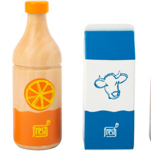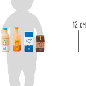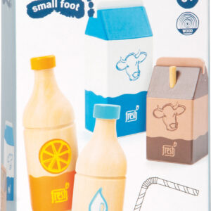 Neljän juoman voimin jano sammuu varmasti! Tämä puinen juomasetti sisältää neljä klassista juomapakkausta: appelsiinimehun, vesipullon, maitopurkin ja pienen kaakaopakkauksen. Setti on suunniteltu erityisesti pienille lapsille – yksinkertaiset kuvitukset ja selkeät muodot tekevät siitä helpon tunnistaa myös niille, jotka eivät vielä osaa lukea.