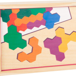 Ajatusjumppaa parhaimmillaan! Tämä kuusikulmiopalapeli tarjoaa innostavan ja opettavaisen haasteen lapsille, jotka rakastavat rakentelua ja ongelmanratkaisua. Tavoitteena on asettaa hunajakennon muotoiset palat oikein pelialustoille niin, että ne vastaavat mallikorttien kuvioita.