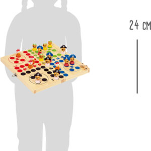 Peli on pakattu kestävään, käytännölliseen puulaatikkoon, joka tekee siitä helpon säilyttää ja ottaa mukaan matkalle. Nopan avulla lapset oppivat tunnistamaan numerot, laskemaan askelia ja seuraamaan pelin etenemistä. Tämä tekee leikistä paitsi jännittävän myös opettavaisen.