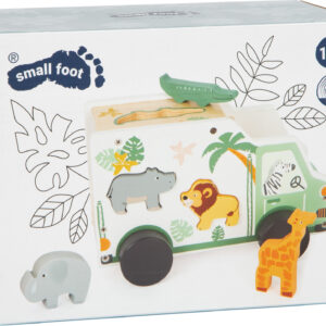 Seikkailu alkaa savannilla! Tämä puinen safaribussi yhdistää kaksi lasten suosikkia – muotolajittelun ja ajoneuvoleikin – yhdeksi monipuoliseksi leluksi. Iloinen seepra toimii kuljettajana, ja sen kyytiin hyppäävät ystävät: kirahvi, virtahepo, leijona ja muut savannin eläimet.