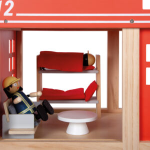 TÀmÀ suuri ja yksityiskohtainen puinen paloasema kutsuu pienet palomiehet ja -naiset seikkailuihin. Kaksi kerrosta, palomiehen liukutanko, joustava helikopterikenttÀ helikoptereineen sekÀ hÀtÀajoneuvo ja realistiset kalusteet (komentokeskus, oleskelutila, verstas) tekevÀt leikistÀ aidon tuntuista. ParistokÀyttöinen ÀÀni- ja valoyksikkö tuo sireenit ja vilkut napin painalluksella, ja avoin rakenne sekÀ suuret ovet helpottavat leikkialueille kurkottamista.