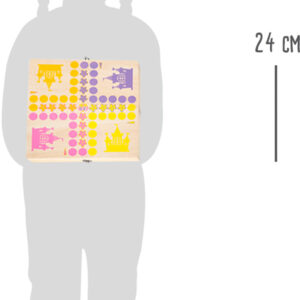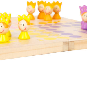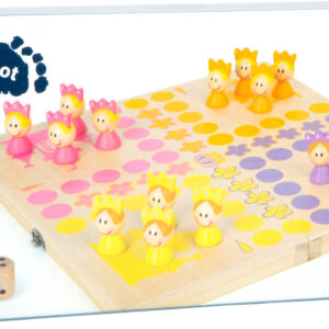 Tämä ihastuttava prinsessateemainen lautapeli kutsuu lapset hauskaan ja opettavaiseen kisaan. Neljä eriväristä 3D-prinsessaa, valmistettu FSC® 100% -sertifioidusta puusta, lähtevät omalle matkalleen kohti kruunua – noppaa heittämällä selviää, montako askelta kukin saa edetä!