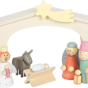 Tämä lapsiystävällinen, puusta valmistettu seimiasetelma tutustuttaa lapset joulun tarinaan lempeästi ja kiinnostavasti. Maria, Joosef, Jeesus-lapsi, paimenet ja itämaan tietäjät sekä eläimet kutsuvat rauhallisiin roolileikkeihin, joissa tarinaan voidaan eläytyä yhdessä koko perheen voimin. Sileäpintaiset, pienten käsien kokoiset osat tuntuvat miellyttäviltä ja kestävät toistuvaa leikkiä – seimi toimii myös tunnelmallisena joulukoristeena.