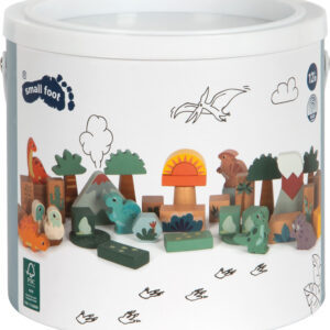 Luo dinosaurusten esihistoriallinen maailma uudelleen! Kun olet purkanut nämä FSC® 100 % sertifioidusta puusta valmistetut rakennuspalikat pakkauksistasi, dinosaurukset valtaavat lastenhuoneen. Tämä rakennuspalikkasarja sisältää laajan valikoiman erimuotoisia ja -muotoisia puisia rakennuspalikoita. Värillisten ja luonnollisten, maalaamattomien puupalojen lisäksi tämä kattava sarja sisältää kuusi dinosaurushahmoa, kaksi dinosaurusmunaa ja palikoita, joissa on esihistoriallisia kuvioita, kasveja ja lehtiä. Hienojen dinosaurusten lisäksi tämän 50-osaisen rakennuspalikkasarjan kohokohtiin kuuluvat kaksiosainen tulivuori, puita ja puinen aurinko, jotka inspiroivat mielikuvitusta luovan leikin aikana ja kannustavat tarinankerrontaan.