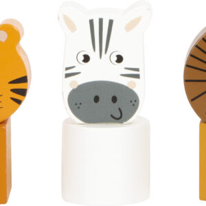 Sisältää kolme eläinhahmoa: tiikeri, kirahvi ja norsu