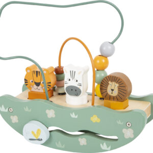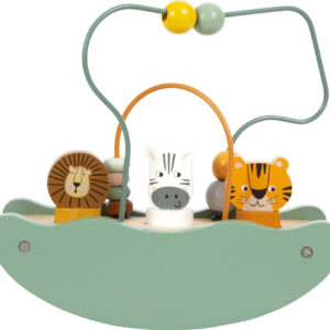 Tämä monipuolinen Safari-teemainen helmisokkelo tarjoaa pienten tutkimusmatkailijoiden arkeen iloa ja oppimista! Kestävästä puusta valmistettu lelu yhdistää helmisokkelon, muotolajittelun, liukupelin ja keinutoiminnon – kaikki yhdessä paketissa. Helmien pujottelu ja hahmojen asettaminen omiin aukkoihinsa kehittävät hienomotoriikkaa, koordinaatiota ja keskittymistä hauskalla tavalla.