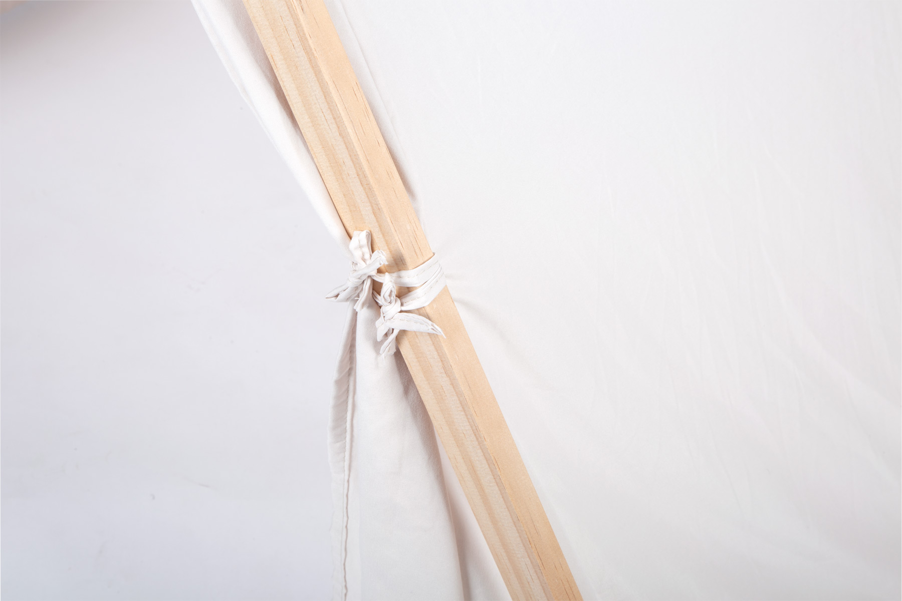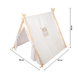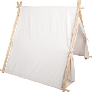 Tämä tyylikäs puu- ja kangasteltta luo lastenhuoneeseen pehmeän, kutsuvan nurkkauksen mielikuvitusleikkeihin, satutuokioihin ja yhteisiin hetkiin. Tukeva puurunko ja laadukas kangaskatto tekevät teltasta pitkäikäisen, ja sivuikkuna päästää valon sisään. Rullattava aukko tuo avaran tunnelman – teltta toimii yhtä hyvin kaveritreffeillä kuin pehmolelujen kotina tai omana rauhoittumispaikkana.