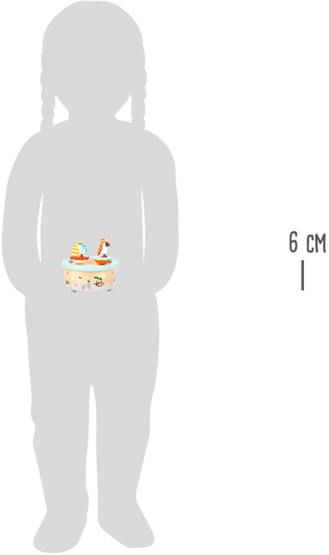 Tämä kaunis soittorasia on valmistettu huolella ja sen kirkkaat värit sekä liikkuvat hahmot kiehtovat lapsen mieltä. Se sopii täydellisesti yöpöydälle, lastenhuoneen koristeeksi tai suloiseksi lahjaksi vauvalle.