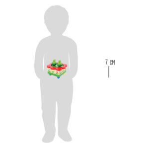 Kirkkaan värinen puinen soittorasia soittaa sävelmän “Merrily We Roll Along”, kun kaksi magneetilla kiinnittyvää sammakkoa “tanssii” lammikon päällä. Hahmot ovat irrotettavia, ja helppokäyttöinen mekanismi tekee soittorasian käytöstä vaivatonta myös lapsille. Suloiset yksityiskohdat ja lempeä musiikki rauhoittavat ja luovat tunnelmaa hetkiin ennen unia.