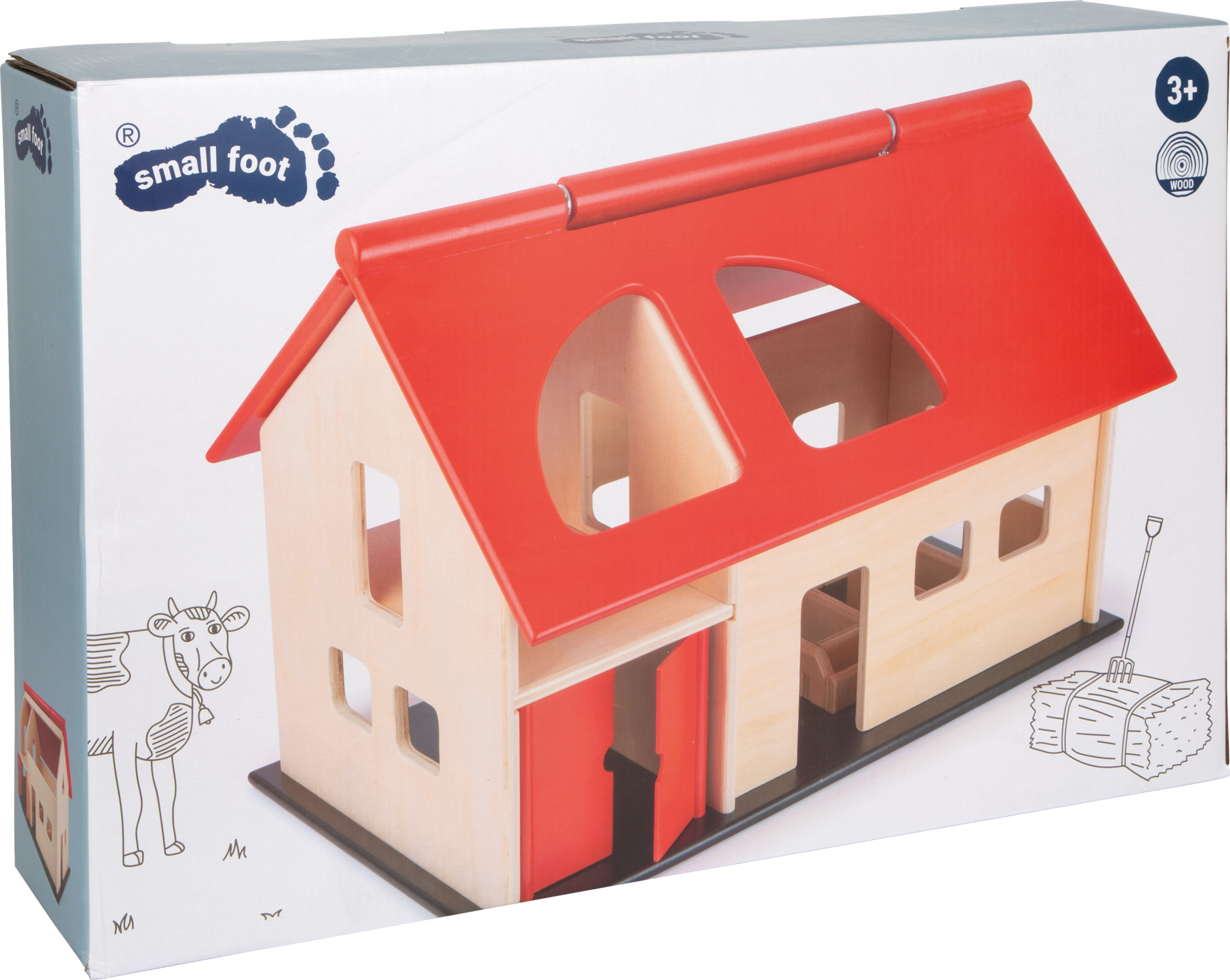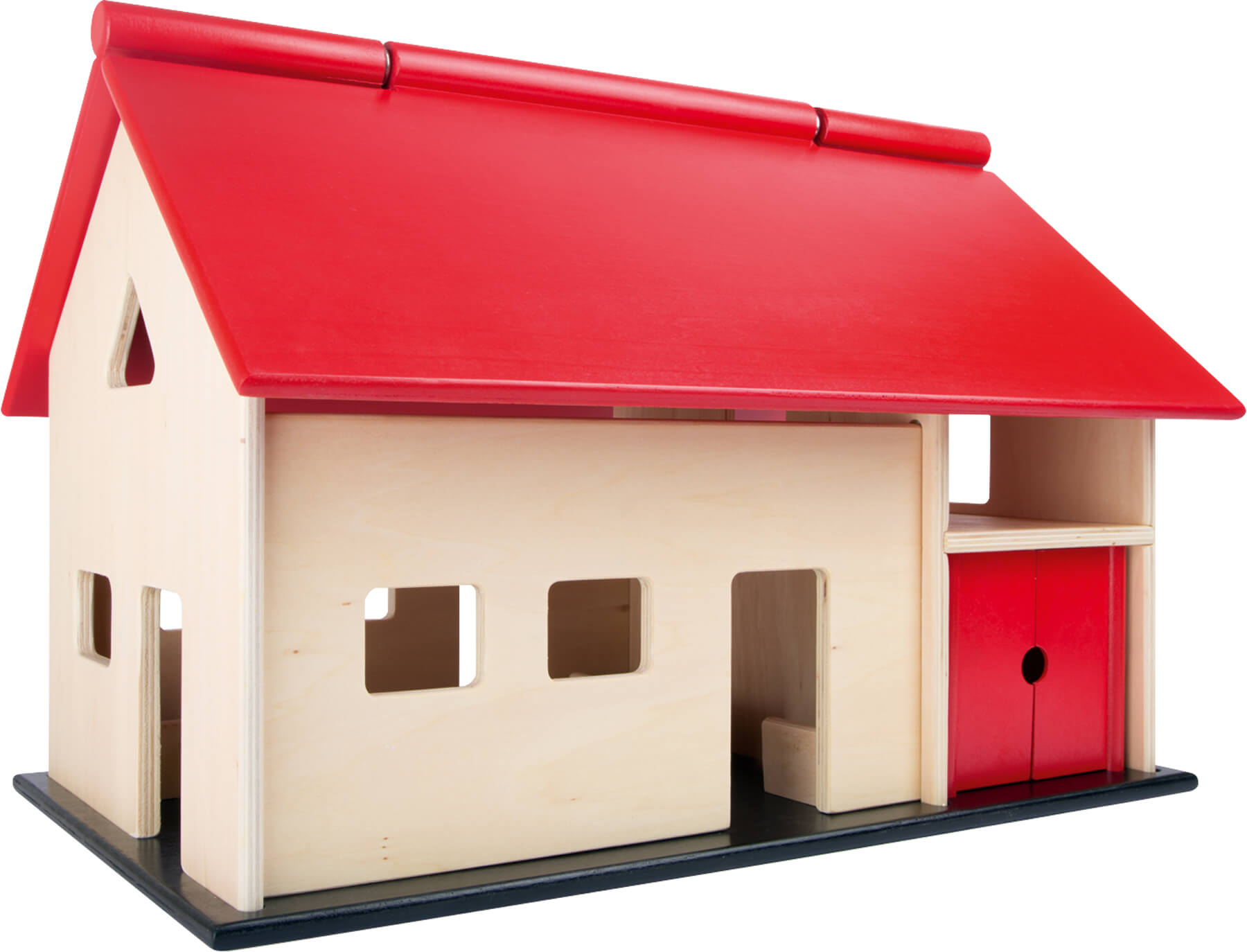 Extraluokan maatila! Tässä suuressa ladossa on runsaasti tilaa monille eläinhahmoille, ja kääntöportit sekä avattava katto tekevät leikkimisestä helppoa ja houkuttelevaa. Pienet viljelijät yltävät taloon ylhäältä ja voivat asetella eläimet juuri sopiviin paikkoihin.